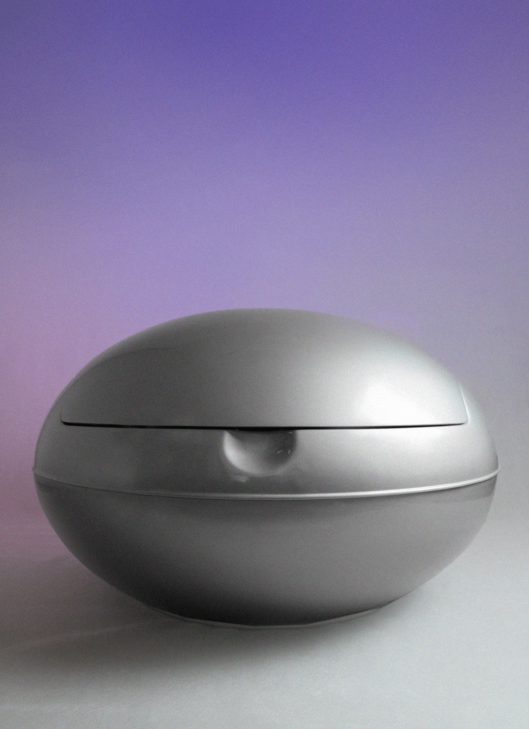 The Garden Egg Chair is one of Peter Ghyczy's best known design pieces. It is a true Space Age icon familiar to many. Peter Ghyczy designed and produced the Egg Chair in 1968 of which these Deluxe 90's variant models exists in a small edition, with pink upholstery and a space grey design using pure polyurethane, making it the first of its kind. With a distinctive round shape, resembling an eggshell, the Egg Chair immediately peaks curiosity. In addition, Ghyczy wanted to design a functional yet aesthetic garden chair with a lid that opens and a cushion inside. Moreover, the Egg Chair is rainproof if you leave it outside thanks to the lid. The polyurethane of this beautiful chair is finished in lacquered space gray. Finally, the special and unique color combination makes this version very special and is still in great condition with minor signs of use. Questions or interest such as a bid (in some cases), can be made anytime.